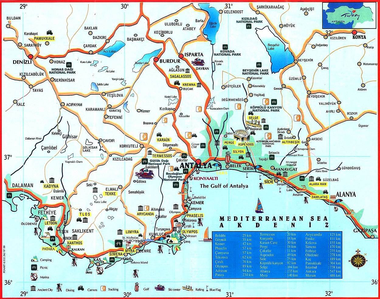 Kaleici, Old Antalya Houses, Grooved Minaret, Şehzade Korkut Mosque, Karatay Madrasa, Perge Ancient City, Karain Cave, Hadrian's Gate, Phaselis Ancient City, Phaselis, Aspendos Theatre, Xanthos Ancient City, Alanya Castle, Myra Ancient City, Apollon Temple, Olympos Go to the Ancient CityIt has many cultural heritages.